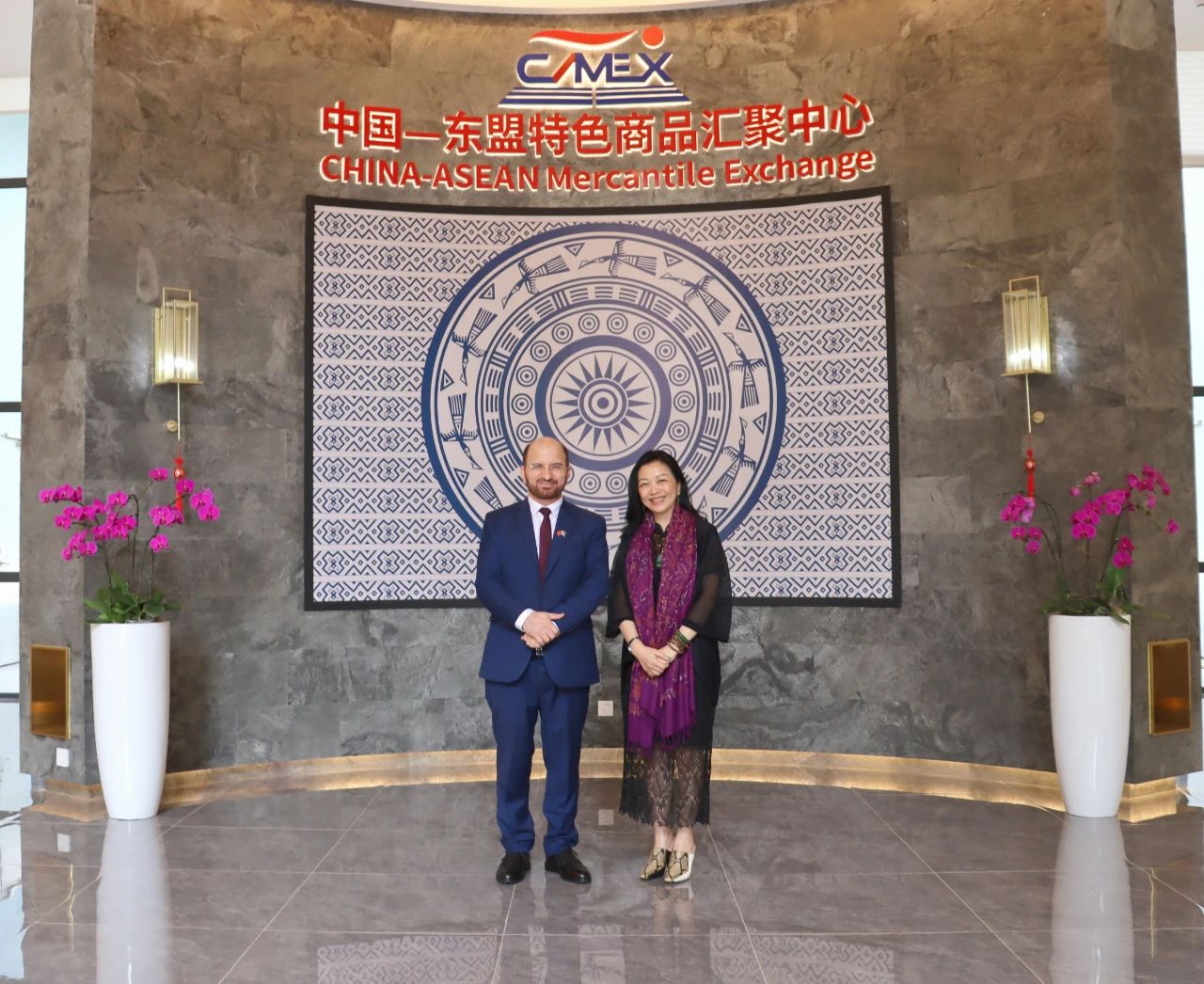 趙海燕董事長(cháng)與薩達爾· 穆罕默德代理總領(lǐng)事在匯聚中心合影