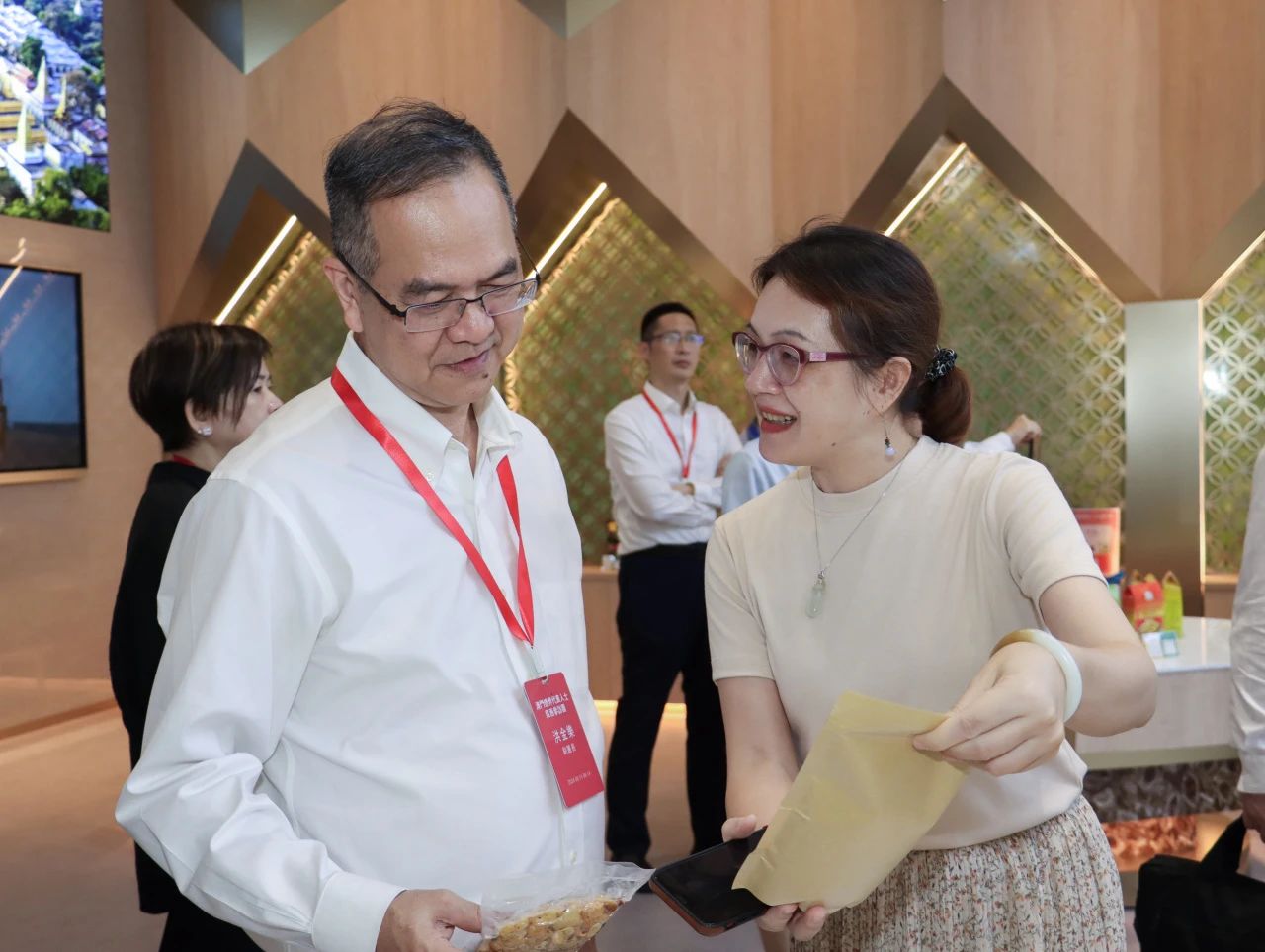 在匯聚中心,參訪(fǎng)團從東盟國家主題館參觀(guān)到RCEP其他區域國家主題館,一路興致盎然,熱情咨詢(xún)項目的相關(guān)信息并不斷合影留念。他們紛紛表示,匯聚中心各館融合了各國當地特色建筑及民俗風(fēng)情元素,巧妙將各國特色產(chǎn)品進(jìn)行突出展示與銷(xiāo)售,這樣的方式十分特別,對商家與消費者來(lái)說(shuō)是一種創(chuàng )新的體驗。其中,來(lái)自澳門(mén)各東盟國家商會(huì )的會(huì )長(cháng)們,對各自國家的主題展館尤其感興趣,當即就商品入駐流程及具體事宜與匯聚中心團隊進(jìn)行詳細對接,現場(chǎng)氣氛熱烈!