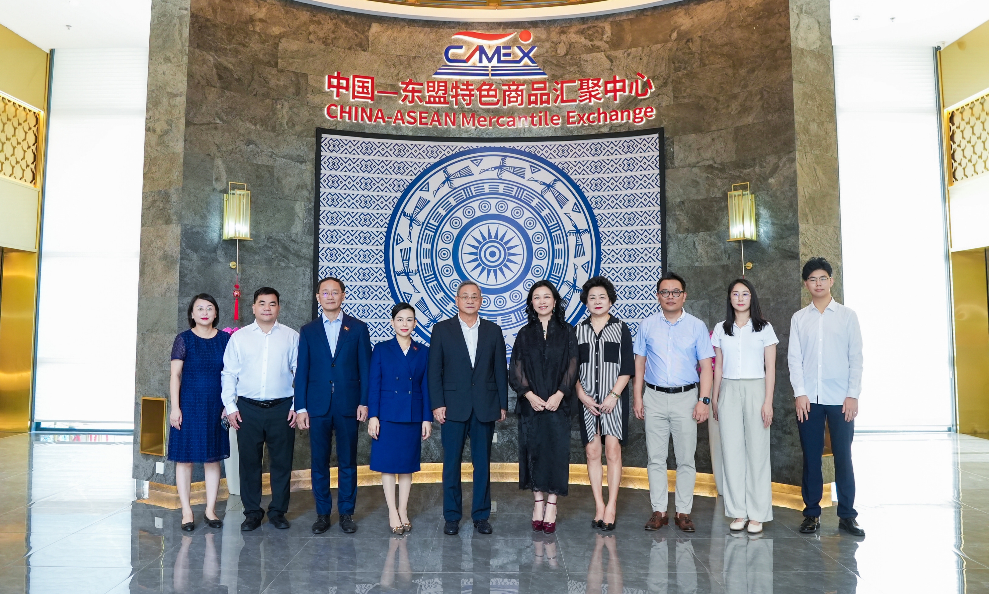 2025年7月28日,柬埔寨RCEP產(chǎn)業(yè)合作委員會(huì )及柬埔寨國際商會(huì )青年發(fā)展處一行到中國—東盟特色商品匯聚中心(簡(jiǎn)稱(chēng)“匯聚中心”)和中國—東盟水果交易中心(簡(jiǎn)稱(chēng)“水果交易中心”)展廳參觀(guān)考察。柬埔寨國際商會(huì )青年發(fā)展處一直與匯聚中心保持著(zhù)密切溝通與聯(lián)系,并在此前已簽署了《戰略合作備忘錄》。廣西新中產(chǎn)業(yè)投資有限公司、中國—東盟特色商品匯聚中心董事長(cháng)趙海燕熱情接待了考察團一行。