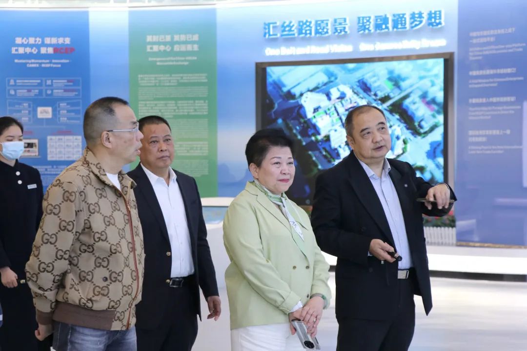 廣西壯族自治區黨委統戰部一級調研員、廣西僑商會(huì )常務(wù)副會(huì )長(cháng)楊真標,廣西僑商會(huì )常務(wù)副會(huì )長(cháng)、輪值會(huì )長(cháng)、廣西桂林萬(wàn)靈置業(yè)投資有限公司執行董事黃江玲,廣西僑商會(huì )常務(wù)副會(huì )長(cháng)、廣西粵玖實(shí)業(yè)有限公司董事長(cháng)鄺升,廣西僑商會(huì )監事長(cháng)、廣西方凱酒店管理有限責任公司董事長(cháng)黃少紅,廣西僑商會(huì )秘書(shū)長(cháng)蔣文釗,怡海集團辦公室主任薛淑良,怡海集團投資部經(jīng)理崔宇赟,中國—東盟特色商品匯聚中心副總經(jīng)理盧春梅等陪同考察。